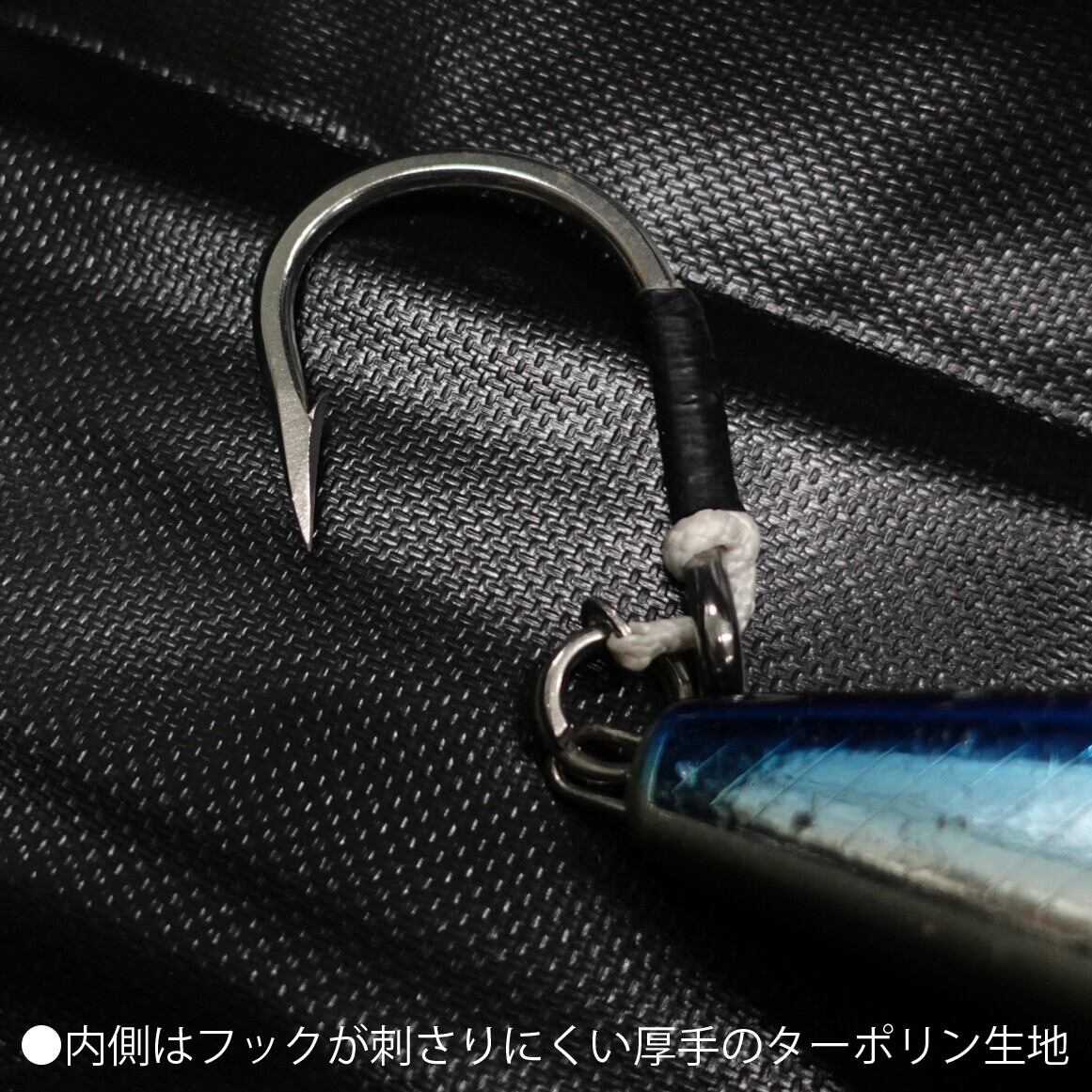 ●ケースの内面は厚手のターポリン生地のためフックも刺さりにくくい仕様です。